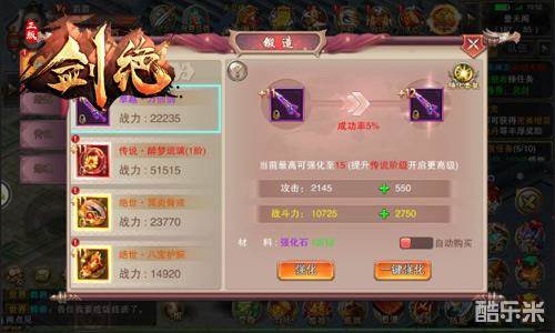 闯荡江湖,怎样没有一把趁手的兵刃?在冰河游戏《剑绝》中,玩家可以在锻造系统中,亲手对装备进行强化、炼魂等操作,更可消耗传说装备秘卷将装备提升至传说品质,大幅提升自身战斗力!此外,多余的装备也可一键熔炼,直接转化为熔炼经验,为玩家带来最多七种属性加成哦!