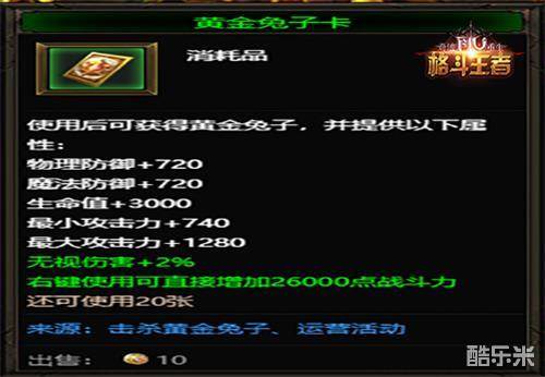 其中有几个BOSS卡片不但属性加成极高,其珍稀程度甚至很多服务器都未曾产出过!比如最顶级的“黄金兔子卡”,作为古战场等级最高的BOSS,这张卡片不但可以为玩家提供海量的基础属性加成,还有“无视伤害+2%”这样的极品属性。