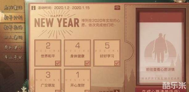 新年伊始,幸存者自己也可以到活动界面制定新一年的计划——选择5个新年心愿的任务排序,逐步完成。每个计划完成后会获得小奖励,5个计划全部完成后将获得丰厚奖励。