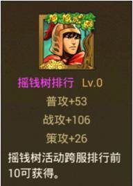 9、全服摇钱树排行榜前10的玩家可以获得“摇钱树排行头像框”头像框可以重复获得,重复头像框可分解为金香玉奖励。
