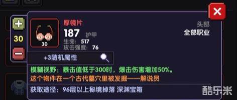 厚镜片:300暴击大概70%暴击率(实际上已经很高了)这应该是给缺暴击的职业准备的,例如牧师,还有就是可以故意卡300暴击来吃这个buff(跟流血头相比差不多可以作为替换品)像是暴击爪,大洋游侠,木游侠这件装备应该可以起到很好的作用