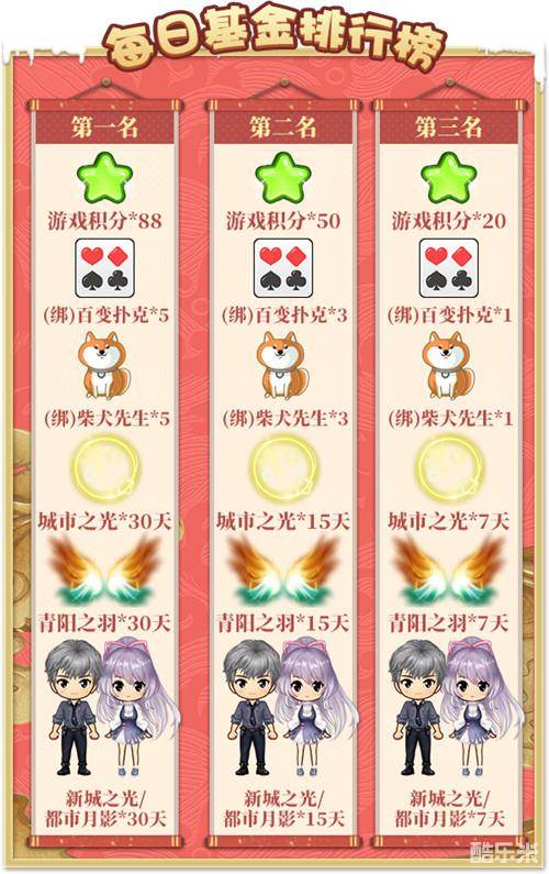 在“每日基金排行榜”中,每天为排行榜上的队伍中所有成员发放奖励: