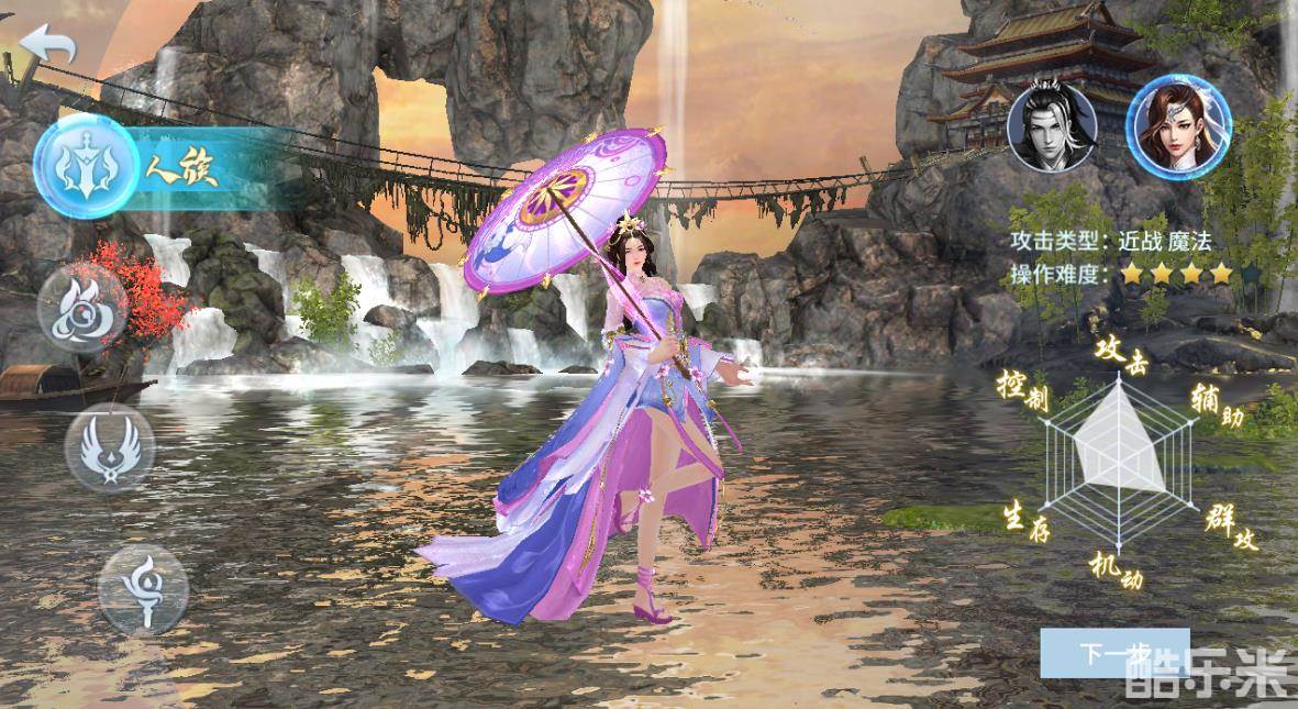 仙族之人爱好和平,亲近大自然,多为天真淳朴之人。仙族属于生存奶妈,也是远程攻击的种族,其攻击属性是魔法,这个种族与其他三个种族明显的区别是其辅助和群攻能力非常强,但生存能力、控制能力以及攻击强度都比较弱,因此仙族适合在群战时躲在队友后方进行辅助,群攻敌方,这个种族的操作难度一般,基本上都能玩得溜。