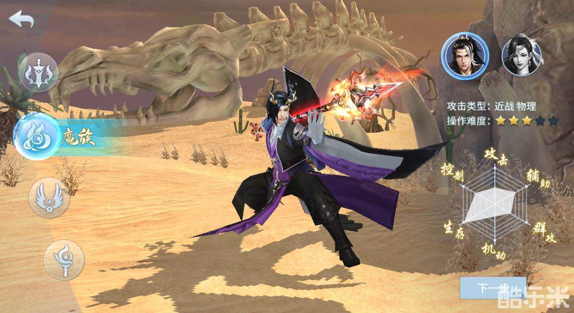 魔族之人专修肉身之力,以力破法,性格狂傲不羁,热血好战。魔族属于控制输出,适合进行近战攻击,其攻击属性是物理,攻击强度较弱,但生存能力非常强,可以扛很久的伤害,因此操作好魔族的难度并不高,其次是带一定的控制技能,但魔族在辅助、机动2个方面实力略弱。