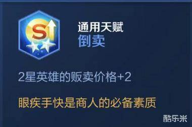 倒卖天赋可以让你的2星英雄出售价格+2块钱,如果你花3块钱买了3个1星典韦合成2星之后再卖出去那么这个2星典韦的售价就会是5块钱,会让你赚2块钱。