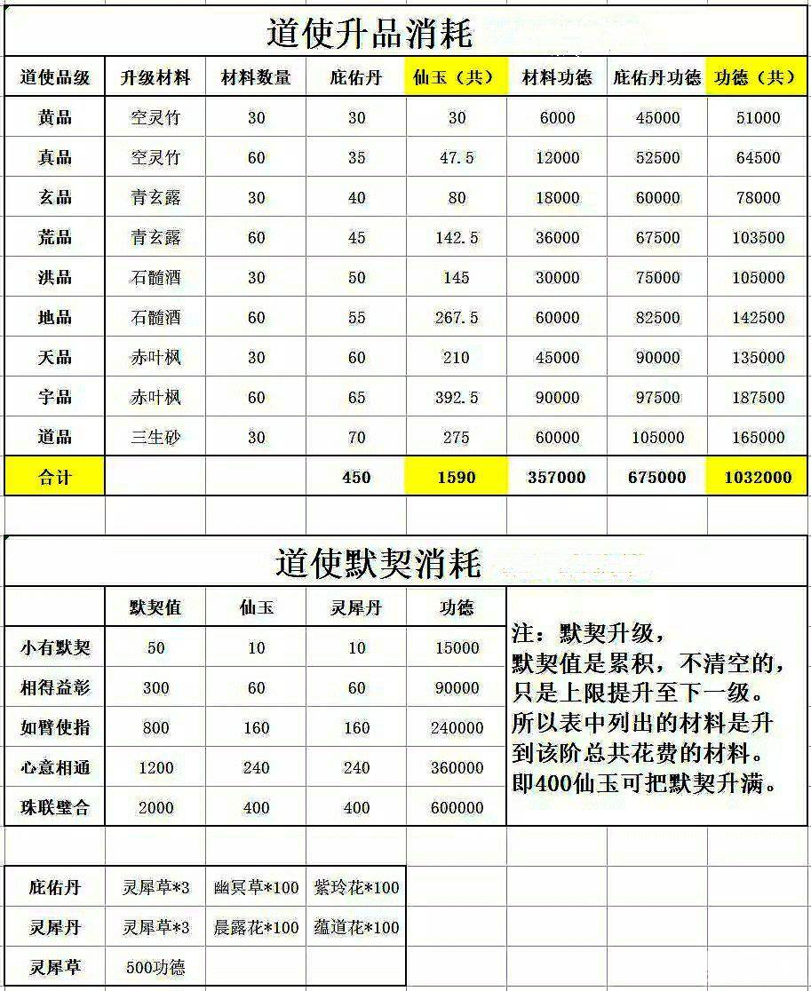 由于斗法版本的更新,培养道使的成本较之以前有所降低,但仍然可以参考一下仙玉培养道使的情况: