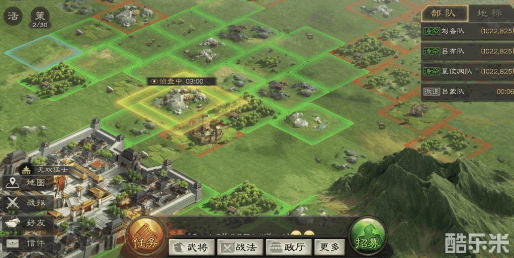 选择兵种适性低武将战法弱的5级地作为进攻目标
