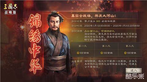 三国志战略版锦绣中华活动参加条件? 三国志战略版锦绣中华活动时间?三国志战略版锦绣中华活动怎么玩?锦绣中华每天获得金铢奖励?1月份游戏里开启了“锦绣中华”全新活动,不少新手玩家可能还不知道要怎么玩!话不多说,下面,就随小编来了解一下吧!