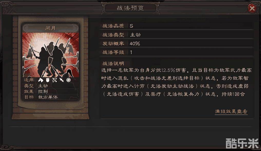 它就是5星武将貂蝉的默认战法【闭月】