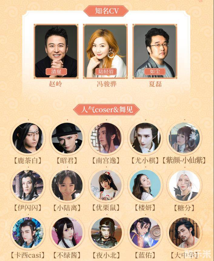 舞台环节更是精彩纷呈。专业舞蹈团队联合打造、共同演绎江湖传奇!华丽壮观的舞台表现、令人震撼的威亚杂技、幽默有趣的互动表演……现场更有赵岭、夏磊、冯骏骅等cv,卡西casi、糖分、鹿茶白等coser齐聚。届时,知名up逍遥散人的也会在场外直播游玩哦,快来偶遇!