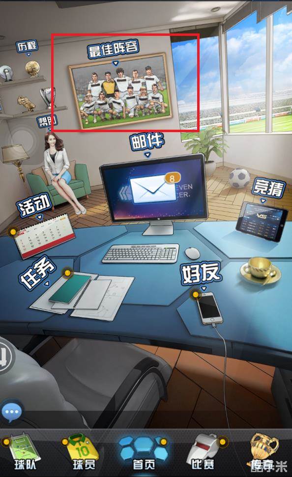 第一步,点击游戏主界面的相框“最佳阵容”系统;