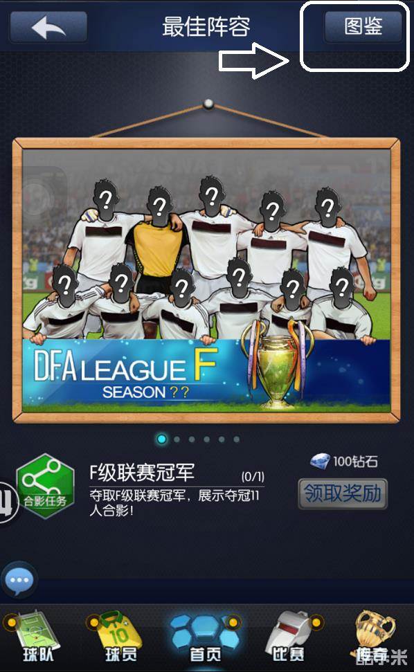第二步,点击右上角“图鉴”按钮,进入球队图鉴界面;