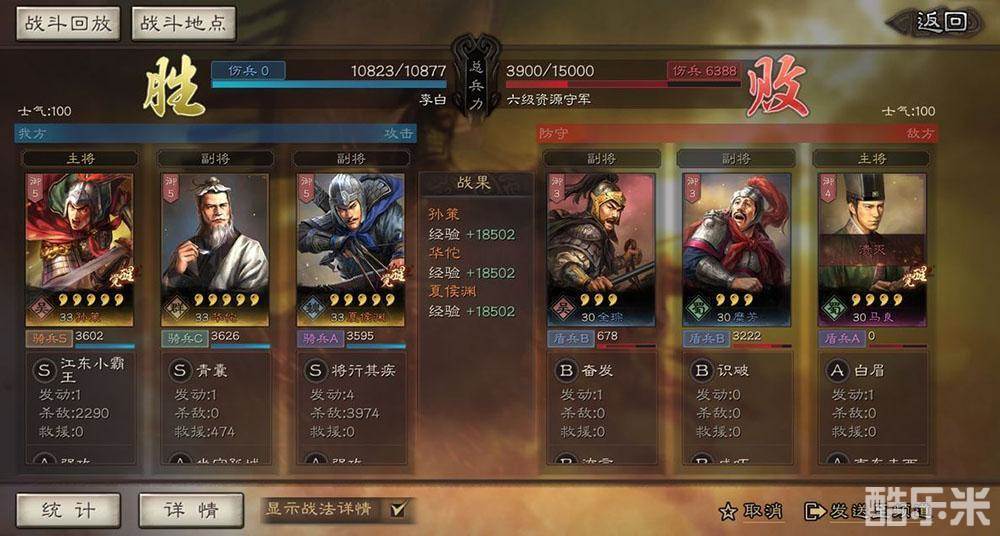 讨伐需要消耗15点体力和1个策书。我们通过讨伐同样可以实现武将快速升级的效果,而且还可以获得装备材料一级资源。