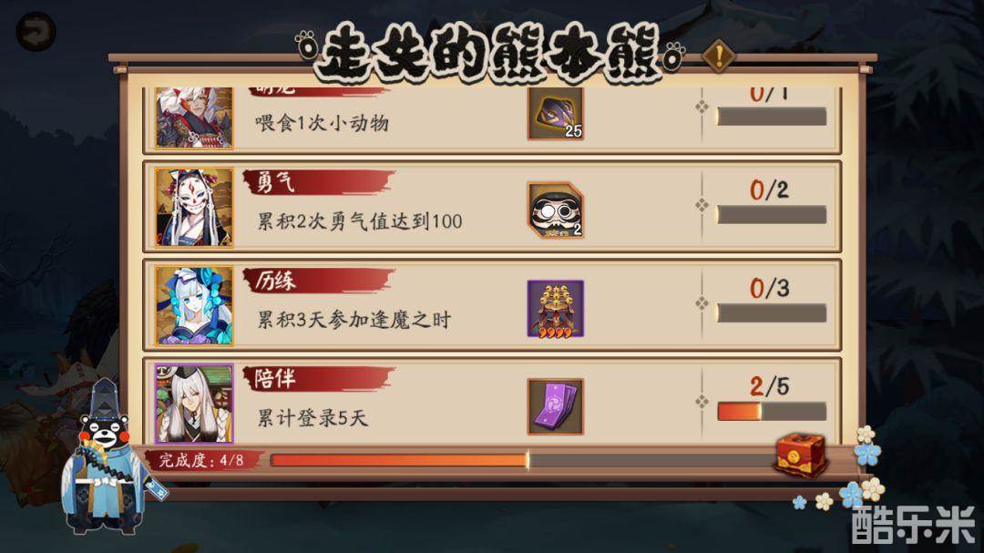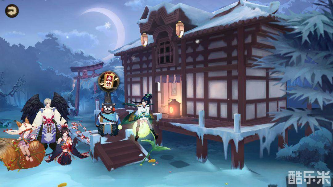 完成全部任务,熊本熊还将来到阴阳师们的庭院中。