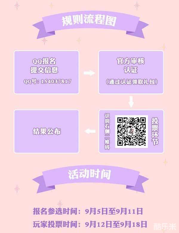 海选报名阶段:在海选报名阶段,玩家可以联系官方活动QQ:154037817提交自己的照片,区服与角色名,自己的参赛宣言进行提交。选手信息在经过审核后,会进入投票“选举阶段”。