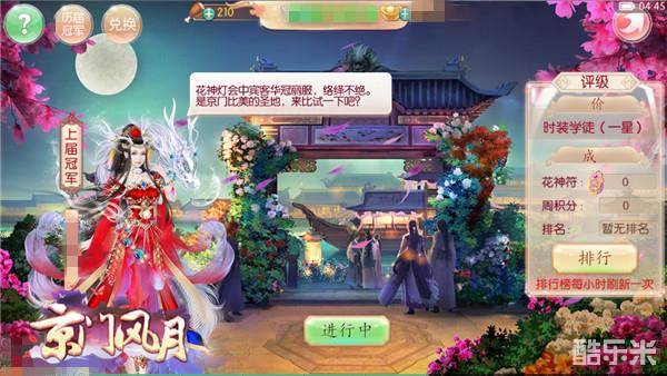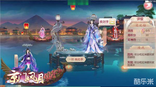 只在朝堂上斗来斗去岂不是浪费了这么美的景致,京门风月为各位准备好了精致的游船,驶往湖中心的五座花亭,整个界面花灯璀璨,唯美动人,玩家将乘船登上花亭与对手比拼华服搭配时,花亭的等级由低到高,华丽装饰各不相同,当然挑战难度也不同。玩家每到一阶都将被匹配到对手进行情景穿搭的挑战,通过换装比分战胜对手才能获得更多的周积分和花神符。只有得分最高的玩家可以成为冠军,受京门玩家们的膜拜,谁说会打扮没有用!