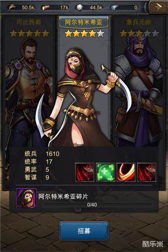 游戏中玩家若想带兵出征,必须得有名将,倘若没有名将,即使士兵再多也无法出兵,所以名将在游戏中的作用至关重要。名将不但是出征的必要条件,也是体现自身军队战力的重要标杆,强悍的名将不仅带兵量多,还能为军队增加额外属性,大幅提升战力,最关键的是在战斗过程中,名将还能通过释放技能对敌方造成伤害,可谓战斗中的灵魂人物。