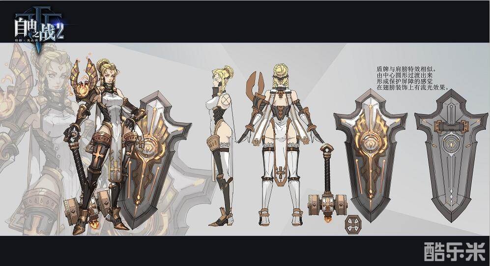 话又说回来,对于多米诺女神这种万人迷来说,仅仅只有一种风格的造型怎么够呢?机械风的超炫三视图再来一张。一样的的肤白貌美、一样的逆天大长腿、一样霸气十足的御姐范儿,而且为了让角色更加生动、饱满,美工大大们还加入了言简意核的批注,真的是用心良苦呢。