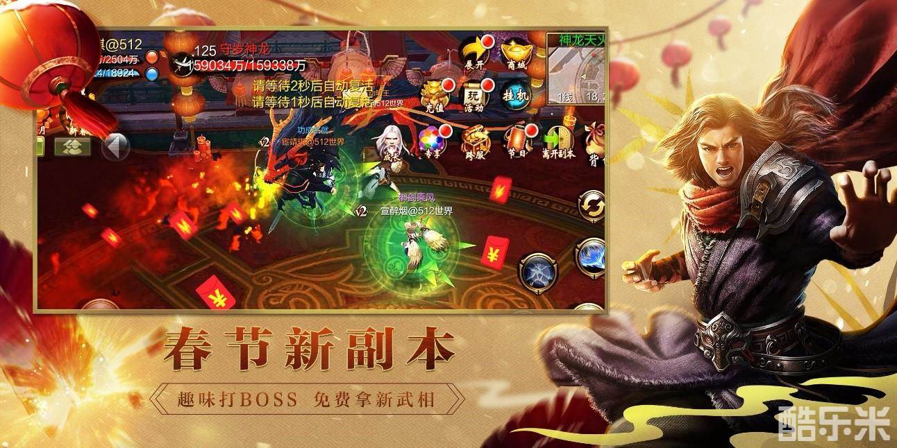 本次新春福利资料片中,我们会分阶段为玩家开启副本,第一阶段开启神龙天火副本,第二阶段会关闭神龙天火副本转而开启元宵灯会副本,副本开启期间可在每天的6:00—23:00跨服参与,考虑到春节期间的特殊情况,我们还在活动内设置了【回购】按钮,只要在活动期间,错过的活动都可通过回购找回!而且跨周不清回购次数,春节期间不能长时间游戏的玩家可以在正月初八之前随时回购所有神龙天火副本次数,在正月十五之前随时回购所有元宵灯会次数。