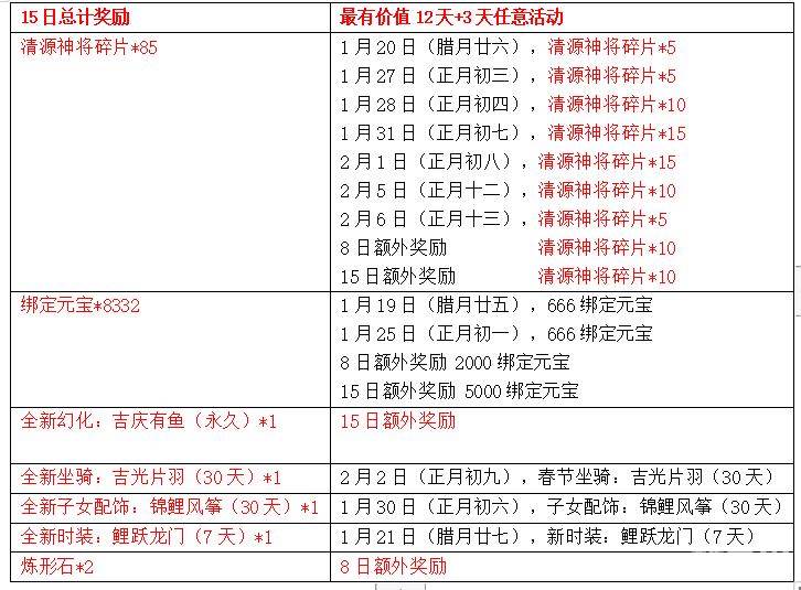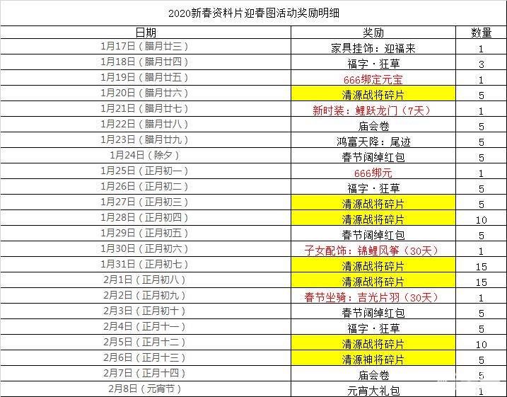 【迎春图只要15天 每天小任务累计可得价值7万元宝奖励 】