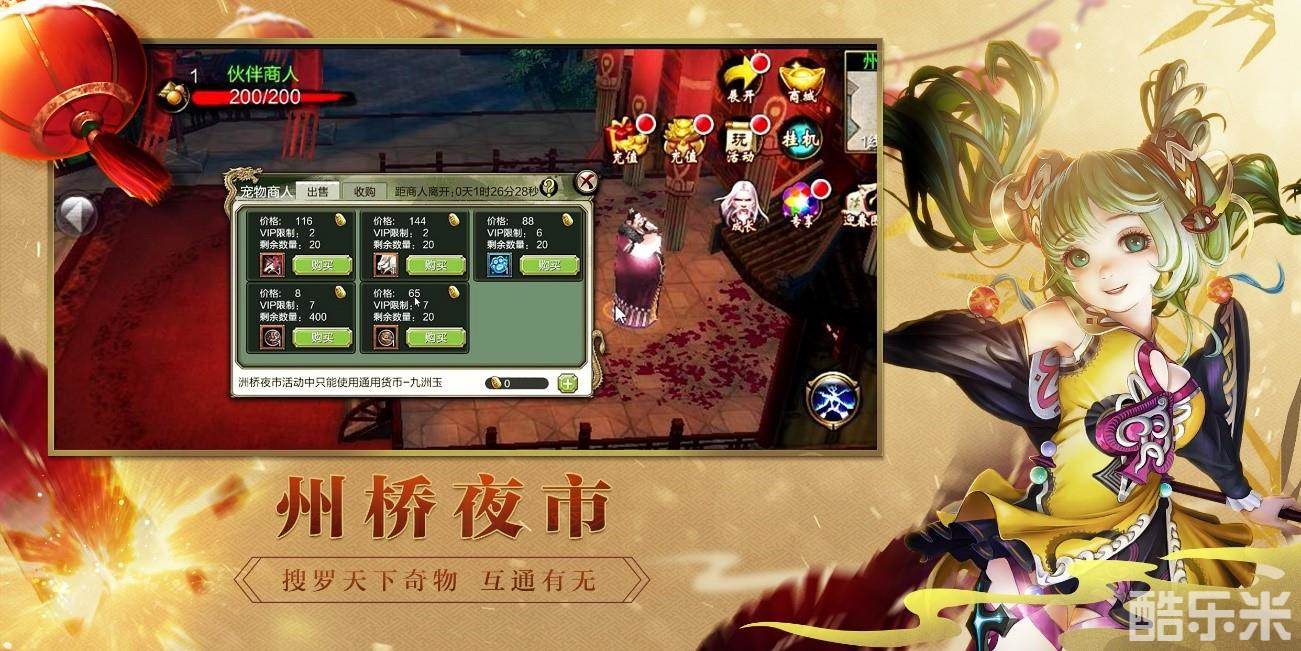 除了春节减负,我们本次将开放全新场景——州桥夜市,各位玩家可通过跨服进入该场景并与场景内的商人完成交易,届时场景内将随机出现四个商人,每位商人出售的将是不同种类的货物。玩家可出售冗余物品,并从商人那里获取州桥夜市通用货币九洲玉,并使用九洲玉购买所需物品,如成品美人、伙伴、时装等。最重要的是,州桥夜市的商人还会不定期的上线稀有道具,周年庆限定坐骑、往期秘闻中出现过的伙伴,甚至还有充值排行榜中才送的红色伙伴也会在州桥夜市商人中上线!如此珍贵的道具,肯定是限量抢购,数量有限,先到先得!各位玩家赶快整理整理手中的高价值冗余物品,兑换成大量九洲玉,换取对自己战力提升更有效的装备吧!