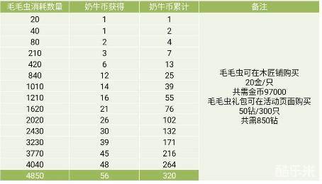 毛毛虫试炼是目前前四天中性价比最高的试炼,10w金320个奶牛币还是很划算的。