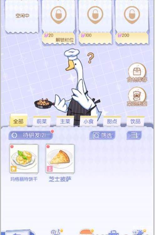 在批量制作菜品前,首先要研发成功获得菜谱。