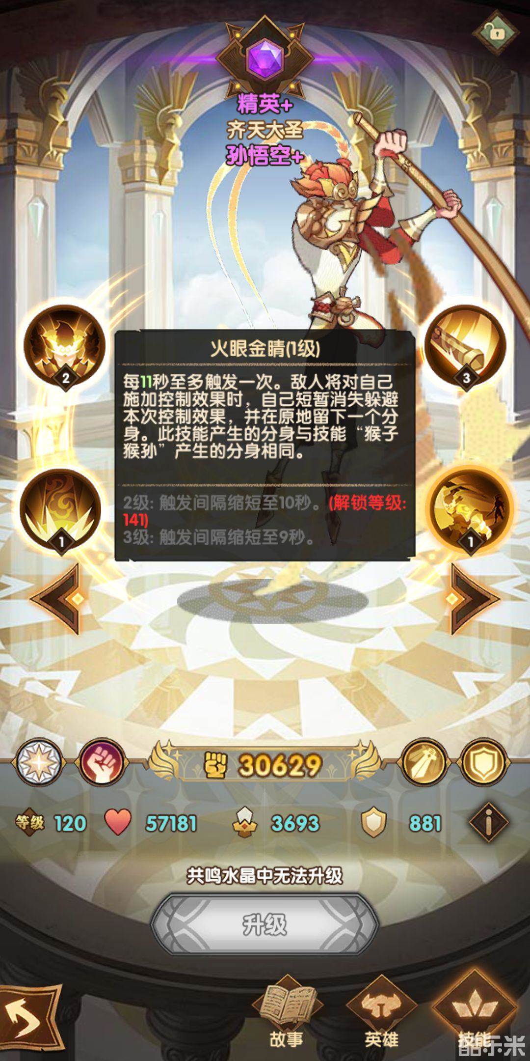 猴子游戏中虽然是个半神但也是非常强力的,开场位置如果放好了肯定是能骗一个控制技能的,分身猴子配合光盾可以抗伤害还能提供爆发伤害,前期还是非常不错的120级后肉度和输出会跟不上。
