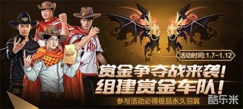 赏金车队活动已经开启。截止1月12日前,车手们可以在游戏活动内-电竞公告招募赏金赛选手进入自己的赏金车队。完成队内选手的赏金任务,即可获取赏金奖励,赏金奖励可于活动页面兑换极品限定羽翼——赏金猎手羽翼(永久)、橙光能源等好礼!