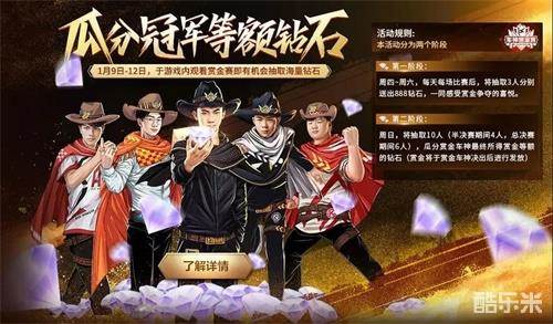 周四~周六,每天每场比赛后,将抽取3人分别送出钻石*888,一同感受赏金争夺的喜悦。