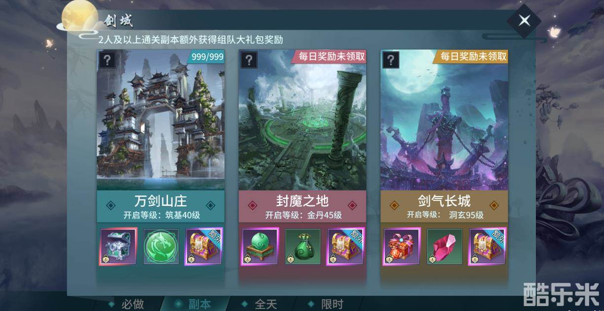 挑战事项:本章副本可通过世界召集;或向宗门好友发起组队申请,切勿单人负战,不然你可能会在副本里迷失方向;又或者被不知名的boos残忍对待,通过团队协助完成通关要求可以获得丰富的物资奖励。