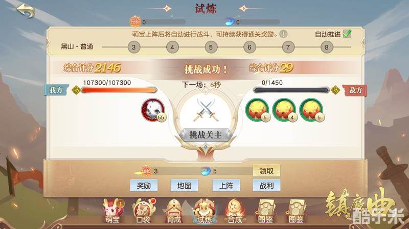 《镇魔曲》准备的“萌宝试炼”,便是让萌宝们出外冒险的全新玩法。黑山、夜影之地、隐莲、天门山、明光城,五处不同关卡等着萌宝们挑战!只要天命者们安排好上阵萌宝、派遣出征,即使暂时离开中州大地,萌宝们依然会持续战斗!普通、困难、英雄、史诗、传奇……试炼难度不断提升,天命者们唯有悉心培育萌宝、提升它们的实力,方能挑战更高难度、闯过更多关卡!