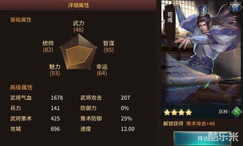 最后一个是军师荀彧,虽然有着比较高的智谋值和高伤害的落石技能,但由于魏国阵容有着较多的军师,无论是郭嘉、贾诩还是司马懿都比荀彧强上很多,获取也不是非常难,所以不太建议新手玩家使用荀彧开局。推荐指数:★★★☆