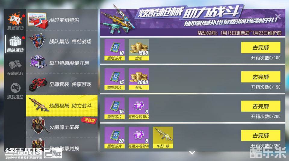 在同步更新的枪械补给兑换活动中,抽取达到一定次数可以直接兑换ACR武器外观华灯-绿以及其他游戏道具奖励。