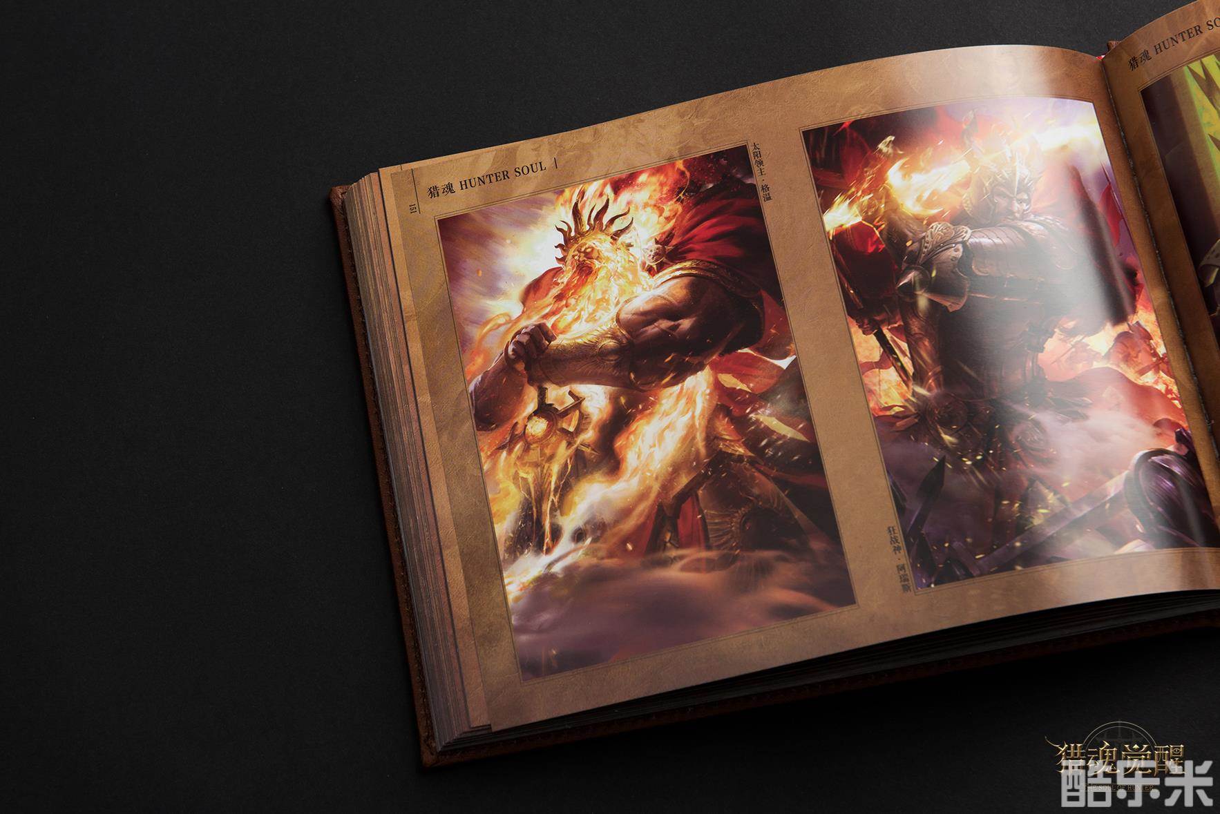 打开礼盒包装,首先映入眼帘的便是厚厚的一本猎魂觉醒设定集——《游骑兵典策》。“血泪作酒,长啸当歌;游骑之旅,尽在典策。”低调内敛的封皮,收起艾兰特洋洋万象。封面用变色皮革裁切、烫印后裱3mm厚木板,内页200克铜版纸四色胶印,将艾兰特大陆的厚重历史凝于一册。