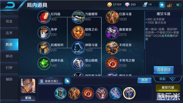 六神装:抵抗之靴、红莲斗篷、不死鸟之眼、反伤刺甲、冰痕之握、魔女斗篷
