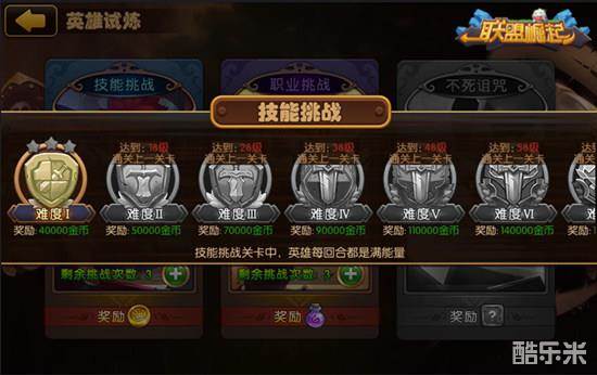 同样的,技能挑战共分为9个小关卡,越往后难度越大,相应地奖励也会越丰厚。技能挑战的模式下,英雄每回合都是满能量状态。每战斗胜利一场即能获得相应的金币奖励,三星通关还有额外的奖励加成哦。