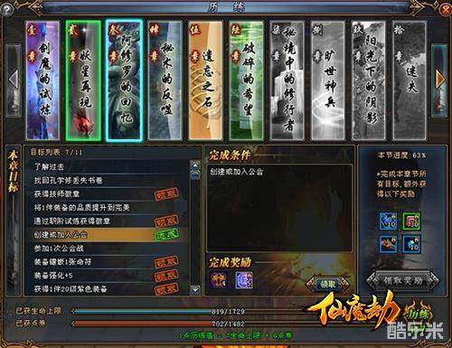 游戏中的每一项重要事件和挑战性的成就,都会在“历练”系统中进行记录。当你完成每个章节里的所有成就时,会获得极丰厚的回报,这也是不惧磨难的修行者该得的奖励。