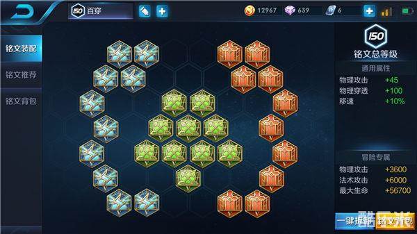 绿色鹰眼是物理英雄铭文的通用铭文选择,增加物理攻击、物理穿透能够提高哪吒前期的输出能力,在上路面对敌方射手时,增加了最大伤害能力的哪吒利用被动能够有效跟对方互相消耗,在血量优势的情况下可以击杀射手,在前期通过铭文的增幅击杀敌人建立对线优势。