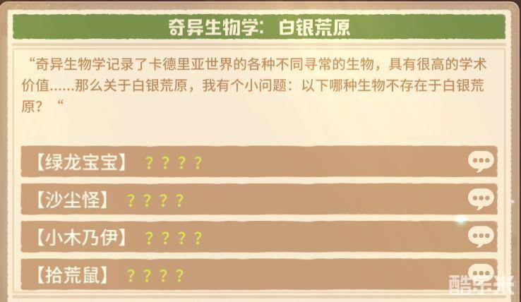 咔叽探险队中有非常多的玩法大家可以去尝试一下,今天我们就来看看游戏中的奇异生物答题玩法如何轻松通关吧,另外从这个玩法中获得的奖励也为玩家们说明哦,不清楚的朋友赶紧来看看,总的来说并不是特别困难,小编会为大家详细说明。