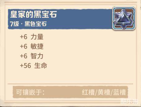 玩家们在游戏中还能遇到黑色宝石和彩色宝石,黑色宝石的所有属性全都包含,而彩色宝石是生命值的加成,这两种宝石所有槽都能带,玩家们注意搭配哦。