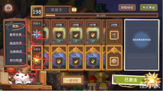 奖励:英雄令到了对应等级可以获得奖励,80级以后后续经验会自动变为英雄令的经验。