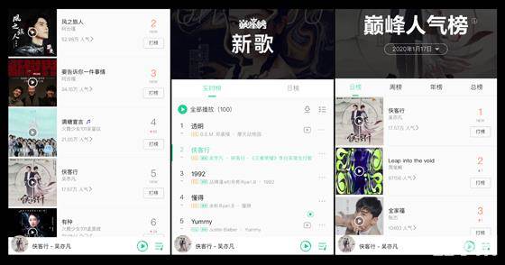1月17日0点,由王者荣耀联手全能音乐人吴亦凡合作的李白英雄主打歌《侠客行》准时上线QQ音乐、酷狗音乐、酷我音乐等各大音乐平台,上线1小时内即荣登巅峰人气榜日榜第1,周榜第5,新歌榜第2。