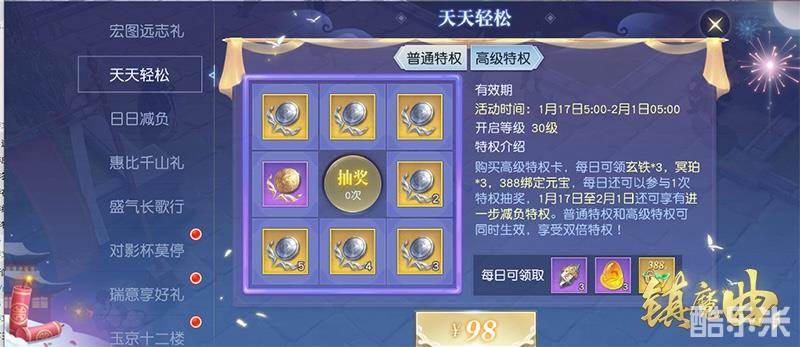 三周年庆典福利爆棚,《镇魔曲》还为天命者们贴心准备了多重春节活动,让天命者们开开心心过大年!“新春特权”里,各类活动、日常玩法纷纷减负,时间缩短奖励不变,让你春节、游戏两不误;“春节签到”中,长假期间好礼天天送!还有除夕守岁送豪礼、鼠年翻牌羸大奖多丰富多彩、趣味十足的活动送上,过年乐翻天,福利拿到嗨!