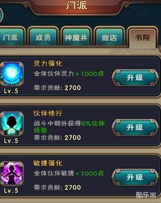 门派贡献可以用学习书院技能,每次学习后,再次学习需要更高的贡献。