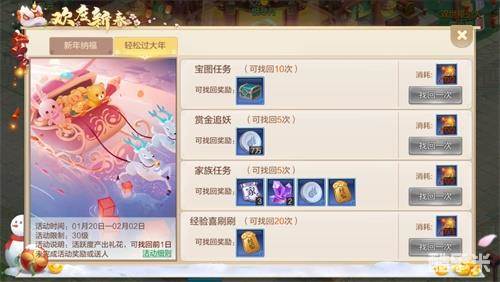 ”让每位玩家都能轻松过大年!1月20日至2月2日,玩家可以使用“礼花”道具轻松找回1天前未完成的全部活动奖励,一口气抱走众多福利。没有“礼花”道具也不要紧,玩家们可以向好友索要该道具哟。
