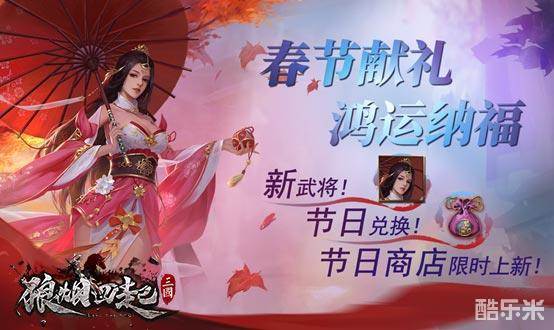 春节献礼 鸿运纳福。《狼烟四起》新年版本现已更新!全新玩法,更多武将,快来领取你的春节礼物,去征服所有不服吧!