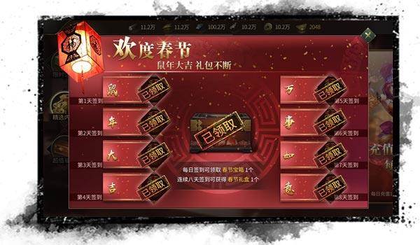 除了新内容外,新春佳节当然少不了新活动啦。只要在春节期间签到就能每天活得春节专属宝箱一个,连续登陆8天更可以领取限定的春节礼盒。除了上线就能领的奖励外,主公在春节期间的任何行为都有可能获得丰厚的奖励,无论是采粮、募兵、还是消费都可以参与春节的专属活动。