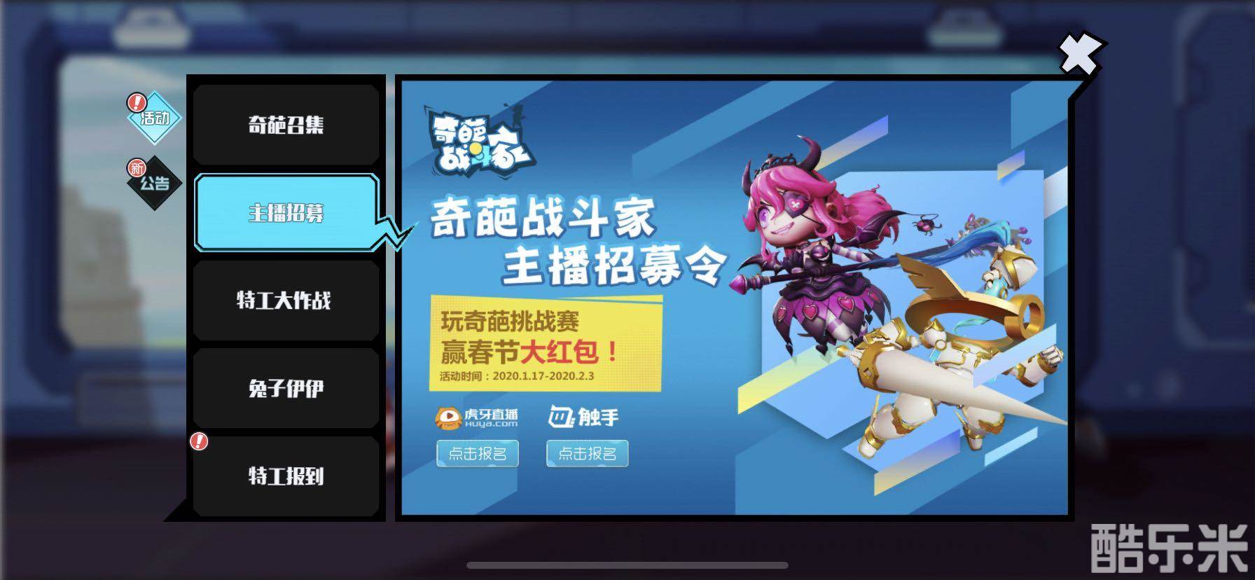 《奇葩战斗家》携手知名直播平台虎牙、触手,带着大额京东卡红包等礼品,一同开展新春主播招募计划,即日起到2020年2月3日,都可以在相关直播平台报名。不管你是玩转各个游戏赛场的高手,还是热爱游戏的萌新,都可以在《奇葩战斗家》中找到十足的乐趣。这个春节,带着水友们在奇葩一起过春节。
