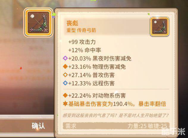 我知道萌新看这一堆字也看不懂,所以我简单总结一下,就我这把弓而言,主要词缀我要3个增伤词缀和一个暴击伤害,为什么不要暴击率呢,因为这把弓我是给麦朵用的,麦朵3星提高自身100%暴击率,这把弓也让暴击率翻倍,我不知道是加算还是乘算,我就按加成更少的加算来说,也就是只要麦朵有33.4%的基础暴击率,他就满暴了,所以武器上根本没必要拿暴击率这个词缀。次要词缀我选首领伤害加成,小怪伤害加成,基础暴击倍率,最后一个随缘吧 先攻能量恢复没什么用,因为麦朵本身回能就非常快,而且也不怎么先攻,护盾就是纸,宝石生命也是纸,对某个系别伤害加成就更没用了